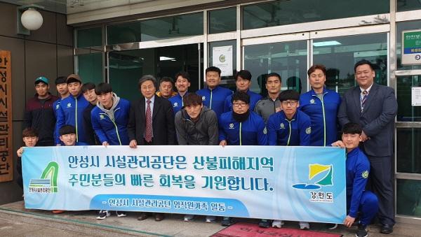 안성시시설관리공단 축구동호회는 지난달 27일 제9회 태백산기 전국 직장인 클럽 축구대회에 참가해 공동3위의 성적을 이뤄냈으며, 회원들은 성금을 모아 산불피해 도민을 위해 대회본부에 기부했다고 8일 밝혔다.
