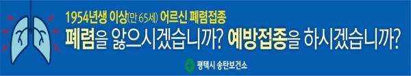 평택시는 65세 이상 어르신을 대상으로 폐렴무료 예방접종을 가까운 보건소에서 실시하며, 대상자 중 미 접종자는 빠른 시일 내 접종할 것을 당부했다.