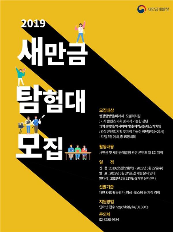 새만금개발청은 새만금 정책 사업 현장을 직접 찾아가 국민의 눈높이에 맞는 콘텐츠를 생산하고 국민과의 소통을 담당할 새만금 정책기자단 ‘2019 새만금 탐험대’를 모집한다.