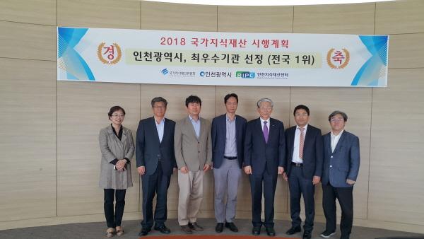 인천광역시는 국가지식재산위원회에서 시행한 2018년 국가지식재산 시행계획 추진실적 점검·평가에서 인천광역시가 17개 광역지자체 중 최우수기관으로 선정됐다고 밝혔다.
