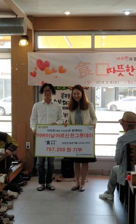 이날 행사는 지난 2일과 3일 이틀간 아라한의 점심시간 수익금 중 20%인 767,200원을 서부희망케어센터에 기탁해 어르신들에게 식사를 대접하는 착한 나눔 행사로, 이곳에서 식사한 지역주민들도 어르신들을 위한 따뜻한 나눔에 동참한 것으로 이어진다는 의미로 기획된 것이어서 그 뜻이 더욱 깊다.