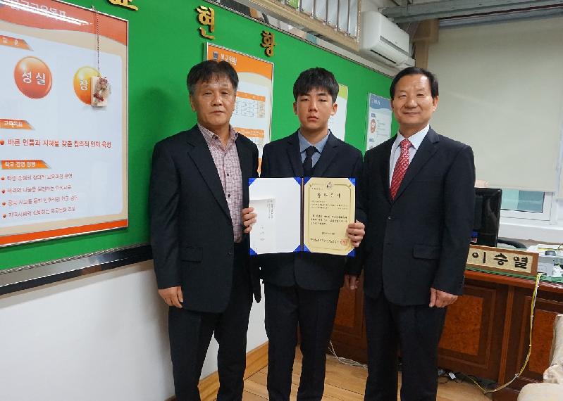 지세포중학교(교장 이승열) 1학년 강○규 군이 제97회 전국동계체육대회에서 스키알파인 회전(1위), 복합(1위)부문에서 2관왕을 수상하였으며 슈퍼대회전(3위) 부문에서도 입상하여 지난 18일, 지세포중학교 교장실에서 거제교육지원청 김범수 교육장은 스키의 불모지인 거제에서 전국단위 동계 체육대회에서 우수한 성적을 거둔 강민규 군의 기량을 치하하고, 미래 국가대표로의 역량을 키우고 더욱 정진하라는 의미의 격려 장학금을 수여했다.