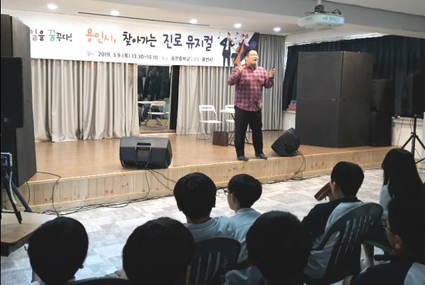 용인시는 9일 처인구 이동읍 송전중학교에서 진로를 고민하는 학생들을 위해 꿈과 진로를 주제로 한 뮤지컬과 특강을 선보였다.