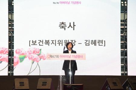 서울특별시의회 보건복지위원회 김혜련 위원장은 지난 8일 장충체육관에서 열린 대한노인회 주관 ‘제47회 어버이의 날’ 행사에 참석했다.