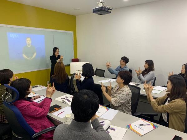 오는 7월까지 매주 목요일 한국 수어 전문교육기관인 경기도 수어교육원 강사가 출강해 총 12회 진행된다. 지난 2일 첫 교육이 있었다.