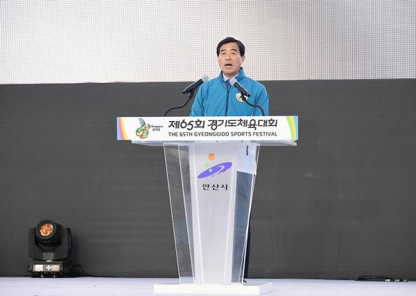 윤화섭 안산시장은 환영사를 통해 “‘생동하는 안산에서, 역동하는 경기의 꿈’이라는 슬로건 아래 경기도민이 하나 되는 감동과 화합의 체전이 될 수 있도록 시민들과 함께 모든 역량을 모아 체전을 준비했다”며 “안산에서 개최하는 이번 도민체전은 도민 모두가 주인공인 한편의 드라마가 될 것이다”고 밝혔다.