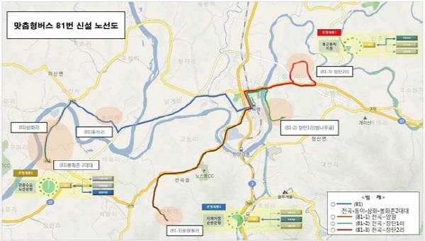 이번 맞춤형버스는 미산 서부권역 주민들을 전곡시가지와 신속하게 연결하는 81번과 웃양원리, 장탄1리, 장탄2리 등 거주민들의 출퇴근과 생활편의를 도모하기 위해 81-1 ~ 3번 버스가 2~3회 추가 편성됐다.