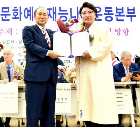 “유엔본부 22개국가, 북한 등 지구촌 곳곳에 문화예술 재능나눔 운동을 펼친 공로 인정받아”
