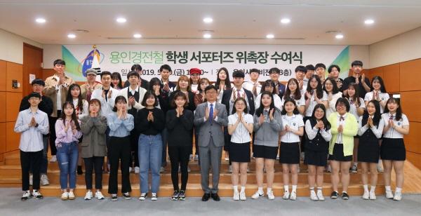 용인시는 10일 시청 비전홀에서 친환경적이고 쾌적한 도시교통수단인 용인경전철의 장점을 널리 알릴 학생 서포터즈 44명을 새로 위촉했다.