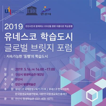안산시 평생학습관은 오는 16일 ‘지속가능한 동행의 학습도시’를 주제로 ‘2019 유네스코 학습도시 글로벌 브릿지 포럼’을 개최한다.