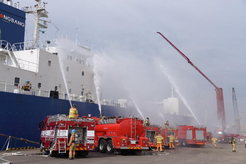 포항남부소방서(서장 김학태)에서는 22일 포항시 남구 동촌동 신항만에서 정박중인 대형선박의 가상화재에 따른 긴급구조통제단 가동훈련을 실시하였다.