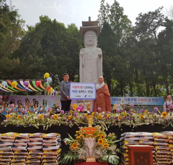 대덕사는 그간 관내 저소득층 562가정에 쌀 10kg 500포와 라면 150박스를 전달해 왔다.
