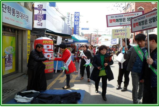 이날 오전11:00부터 북신시장 및 월드마트앞 14:00부터는 문화마당에서 결핵예방, 결핵치료안내, 호흡기 질환예방을 위한 기침예절에 관하여 결핵치료 병원과 함께 캠페인을 실시한다.