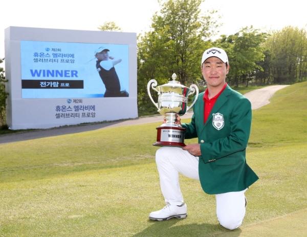 전가람은 지난 12일 인천 드림파크 CC파크 코스에서 끝난 한국프로골프투어 제2회 휴온스 엘라비에 셀러브리티 프로암에서 4라운드 합계 16언더파 272타로 우승했다. 특히 이번 우승은 첫날부터 마지막 날까지 단독 선두를 놓치지 않은 와이어 투 와이어 우승으로 상금 1억2,000만원을 받았다.