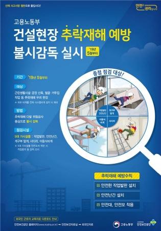 고용노동부는 이번 감독에서 안전난간, 작업발판, 열려 있는 부분의 덮개 등 추락 방지 안전시설을 점검하고, 안전관리가 불량하면 개선될 때까지 작업 중지 등의 강력한 조치를 할 계획이다.