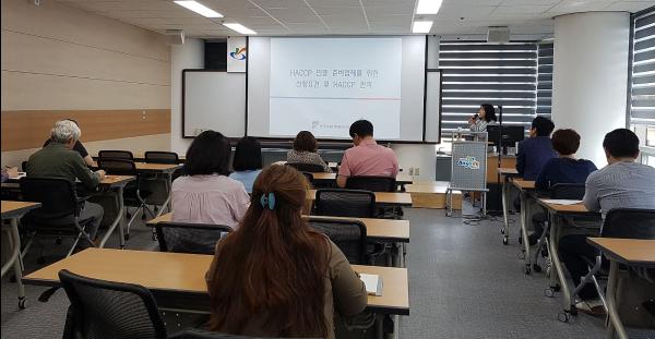 이번 교육은 2020년 12월 1일까지 HACCP을 의무적으로 적용해야 하는 업체의 경제적·기술적인 부담을 경감시켜 주고, HACCP에 대한 이해도를 높이고자 마련됐으며, HACCP 인증절차 및 위해요소 분석방법, 개인위생관리 및 최저 비용의 공장설계 등을 다루어 인증에 필요한 최적의 방법을 제시했다.