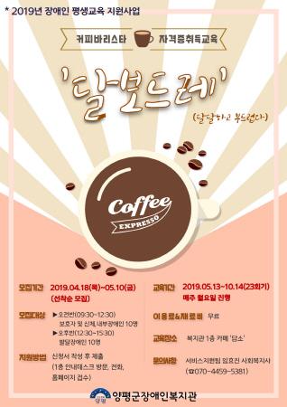 양평군은 지난 13일, ‘2019년 장애인 평생교육 지원 사업’으로 커피 바리스타 창업교육을 양평군장애인복지관에서 개강했다고 밝혔다.