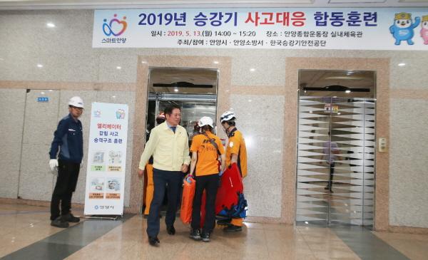 최대호 안양시장도 현장을 찾아 승강기에 갇히는 사태를 시연했다. 이에 비상통화장치로 구조를 요청하자 119구조대원으로 부터의 신속한 구출 상황훈련이 실시됐다.