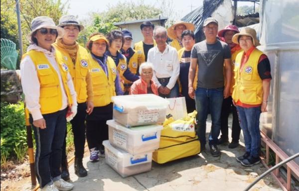 봉사회는 지난 7일 밤 9시경 전기누전으로 추정되는 화재로 주거용 비닐하우스가 전소된 피해주민에게 담요, 의류, 쌀, 취사도구 등 구호물품을 전달하며 위로의 말을 전했다.
