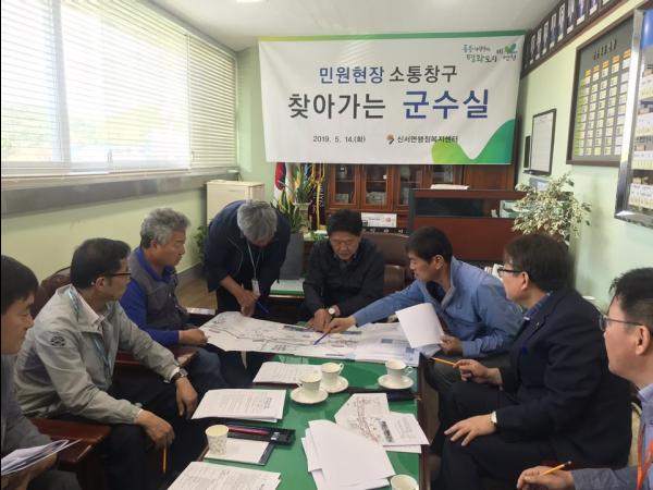 이번 ‘찾아가는 군수실’ 민원상담 내용은 지역의 오랜 숙원사항인 신서면 구 복지회관 철거 부지 내 주민과 군 장병을 위한 편익시설 건립 및 생활SOC 주민건강센터 설치 관련 다수의 부서가 복합적인 검토가 필요한 현안과 다양한 문제점들, 영농철 농업용수 확보 및 산사태 취약지역 토사유출 방지 등 생활불편 사항에 대해 관련부서가 배석한 가운데 현장을 확인하며 심도 있게 논의하는 시간을 가졌다.