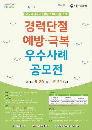 인천광역여성새로일하기센터에서는 여성가족부 경력단절예방 인식개선 사업의 일환으로 2019년 경력단절예방·극복 우수사례 공모전을 개최한다고 밝혔다.