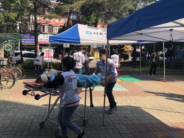이날 훈련은 시흥시 은행동 아파트 공사장에서 공사도중 LPG 가스폭발로 인한 붕괴사고가 발생했다는 상황을 가정했다. 사고접수, 유관기관 상황전파, 긴급출동, 현장응급의료소 설치, 응급처치 및 이송, 상황보고 및 현장조치 순으로 진행됐다.