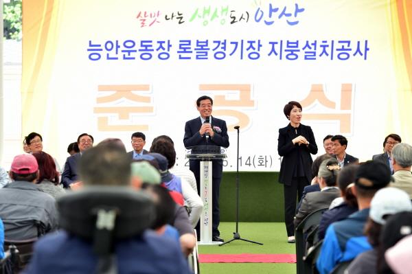 안산시는 윤화섭 안산시장을 비롯해 시의원, 장애인 체육인 등 200여 명이 참석한 가운데 능안운동장 론볼경기장 지붕 설치공사 준공식을 열었다고 15일 밝혔다.