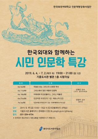 용인시 기흥도서관은 오는 6월 4일부터 7월 2일 화요일마다 한국외국어대학 교수진이 시민의 인문소양 함양을 위한 인문학 특강을 진행한다고 밝혔다.