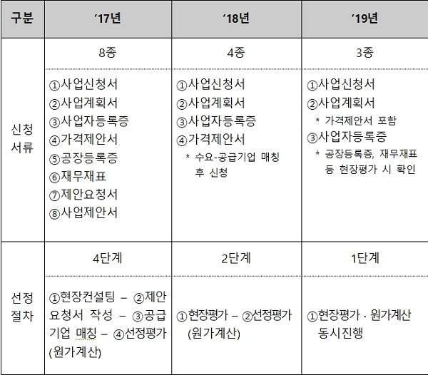 중기부는 그동안, 스마트공장 사업 신청서류를 ’17년 8종, ’18년 4종, ’19년에는 3종으로까지 줄이고, 선정기간도 5주에서 2주로 대폭 단축해 중소기업의 편의성을 제공한 바 있다.