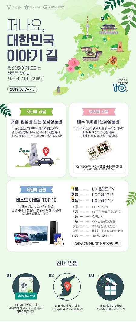 공사는 위치기반 타깃팅이 가능한 SK텔레콤의 T맵과의 업무제휴를 통해, 소비자가 T맵을 실행해 대한민국 테마여행 10선의 117개 관광지 중 한 곳을 목적지로 정해 도착하는 경우 즉석 추첨을 통해 인근 관광지입장권과 모바일 문화상품권을 실시간 증정한다.