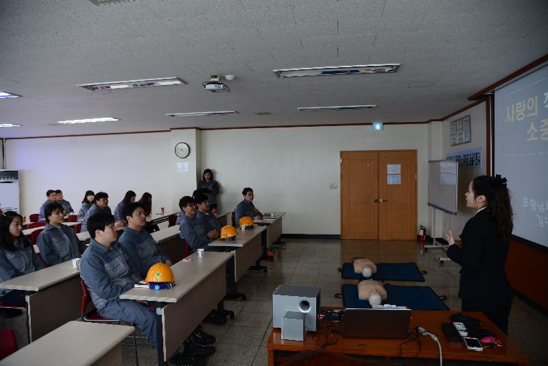 이날 소방교육은 공장 내 화재 및 응급 상황 발생시 대처할 수 있는 화재초기 대응 및 대피법, 심폐소생술 실습을 통한 교육으로 참석자의 많은 관심을 받았다.
