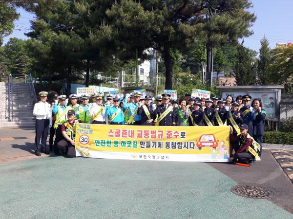 부천오정경찰서는 지난 14일 부천 까치울 초등학교 정문에서 녹색어머니회원, 까치울 학교장 이하 교직원, 부천 오정모범운전자회와 합동으로 등굣길 어린이 교통안전 캠페인을 실시했다.