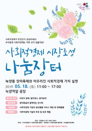 의정부시 마을·사회적경제 지원센터는 오는 18일 녹양동 장미축제와 연계해 제2회 사회적경제 시장조성사업인 나눔장터를 운영한다.