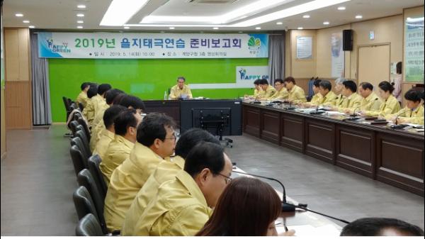인천 계양구는 지난 14일 구청 영상회의실에서 과장급 이상 전 간부공무원이 참석한 가운데 ‘2019 을지태극연습 준비보고회’를 가졌다.