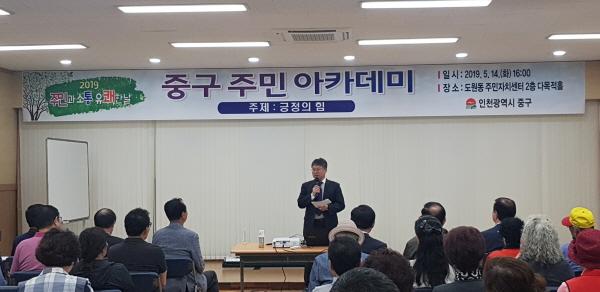 이날 행사는 도원동 주민자치센터 2층 다목적홀에서 진행 되었고, 1·2부로 나눠 1부는 ‘주민 아카데미’는 김찬배교수가 ‘긍정의 힘’이라는 주제로 강의해 주민들의 큰 호응을 받았다.