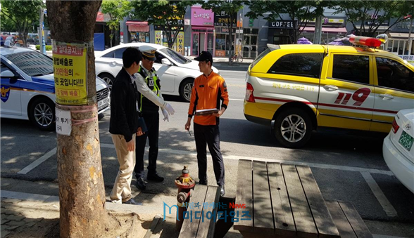 대구소방-경찰 합동 소화전 적색노면표시 대상 선정 모습 <대구시 제공>