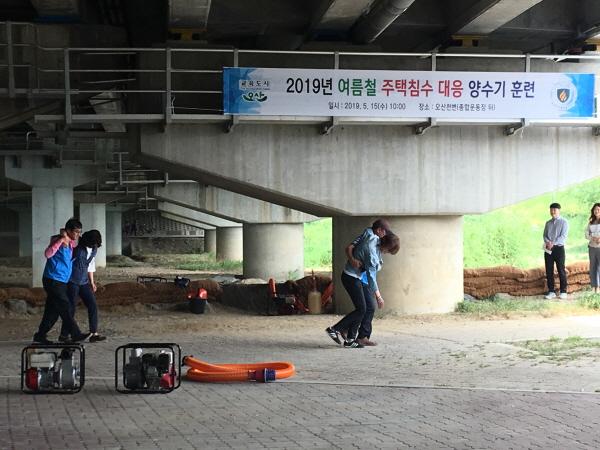 오산시는 지난 15일 여름철 집중호우를 대비한 양수기 작동 훈련을 실시했다.