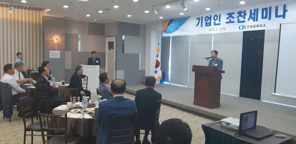 오산상공회의소는 16일 오산웨딩의전당에서 김문환 오산시 부시장, 전병운 오산상공회의소회장 및 기업인, 유관기관장 등 70여명이 참석한 가운데 기업인 조찬 세미나를 개최했다.