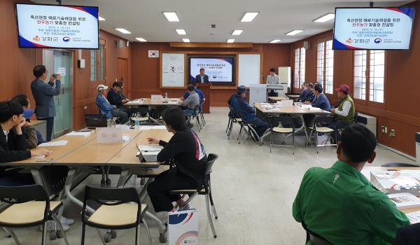 강화군은 지난 15일 농업기술센터에서 농촌진흥청 국립축산과학원과 함께 한우연구회원을 대상으로 축산현장 맞춤형 종합컨설팅을 실시했다.