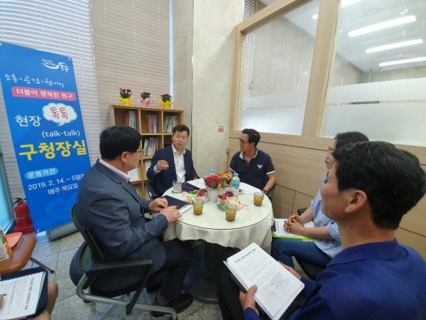 소통·공감·참여로 더불어 행복한 동구를 만들기 위해 운영되는 현장톡톡 구청장실은 매주 목요일 1개동을 방문하며 지역 현안사항과 고충민원을 신속히 파악해 해결하는 현장 중심의 행정을 구현하고자 추진됐다..