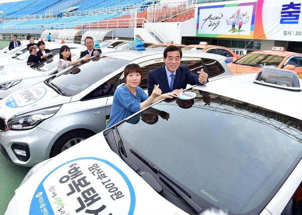 윤화섭 안산시장은 지난 16일 와~스타디움에서 열린 ‘임신부 100원 행복택시·교통 약자 지원택시 출범식’에서 “임신부를 포함한 교통약자의 이동권 보장을 위해 100원 행복택시와 바우처택시를 도입하겠다”고 밝혔다.