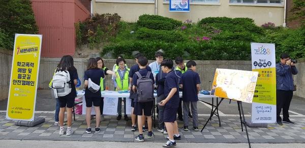 성남시청소년재단?분당서현청소년수련관은?지난 16일?오전?8시?장안중학교에서?청소년들의?안전의식과?위기대응능력?강화를?위한?2019?안전교육박람회?‘세븐세이프’를?개최했다.
