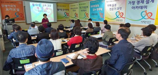 5주간 웰다잉의 의미와 비젼, 존엄한 마무리를 위한 연명의료 결정법에 대한 이해, 바람직한 장례 문화, 죽음에 대한 이해, 삶과 죽음을 통한 자아통합, 유가족 사별 관리, 법률적인 죽음준비, 웰다잉 문화 확산을 위한 활동을 주제로 웰다잉 교육을 실시하며, 수료 후 노인통합교육지도사, 웰다잉 심리상담사 등 관련 자격증을 취득할 수 있고 교육 훈련을 통해 강사로 활동할 수 있다.
