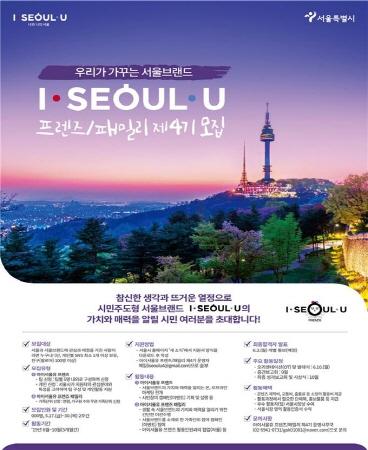 서울시는 시민주도형 서울브랜드 홍보단 ‘아이서울유 프렌즈’ 제4기 활동인원을 17일부터 오는 30일까지 모집한다고 밝혔다.