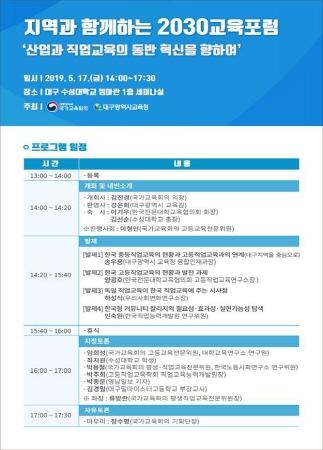 대통령직속 국가교육회의와 대구광역시교육청은 ‘산업과 직업교육의 동반 혁신’을 주제로 제2차 ‘지역과 함께하는 2030 교육포럼’을 개최한다.