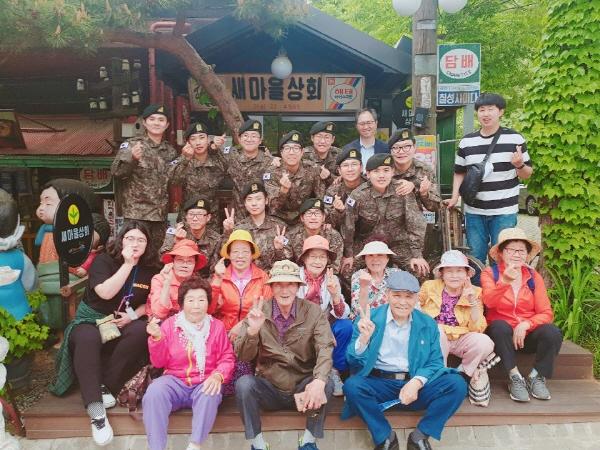 파주시문산종합사회복지관 북부스마트복지센터는 17일 ‘할매, 할배 같이 놀아요’ 프로그램 일환으로 지역 어르신 10명과 25사단 방공중대 군인 장병 10명이 함께 헤이리마을을 방문하는 ‘세대공감나들이’를 진행했다.