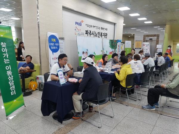 이날 행사에는 파주시 맞춤형복지지원팀, 파주시보건소, 중독관리통합지원센터, 치매안심센터, 노인복지관, LH주거복지센터, 금촌2동 등 7개 기관이 함께 참여해 주민생활현장의 주민밀착형 공공서비스를 제공했다. 특히 이번 사업은 가정의 달을 맞아 노인복지관을 이용하는 어르신들의 고충을 해소하기 위해 마련돼 어르신들로부터 많은 호응을 얻었다.