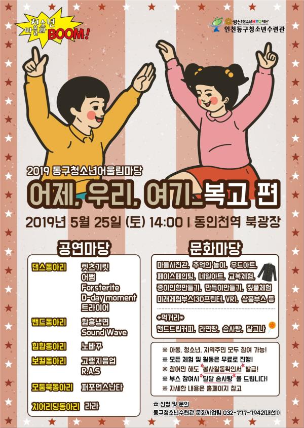 인천 동구청소년수련관은 오는 25일 오후 2시 동인천역 북광장에서 동구 청소년어울림마당을 개막한다.