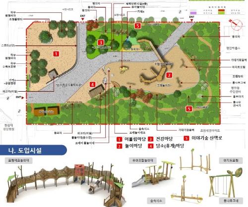 유아용과 어린이용으로 구분된 놀이시설이 마련되고 주민들의 커뮤니티공간과 운동시설이 들어선다.