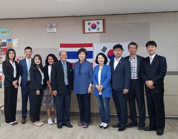 경기도의회 조성환, 손희정 의원은 지난 15일 한빛고등학교를 방문해, 한빛고를 방문한 태국 교수 및 학생단 70명과 한-태 교류형 축제를 진행하고 있는 학생들을 격려하고 양교 교사들과 함께 향후 국제교류 프로그램에 대한 논의를 진행했다.